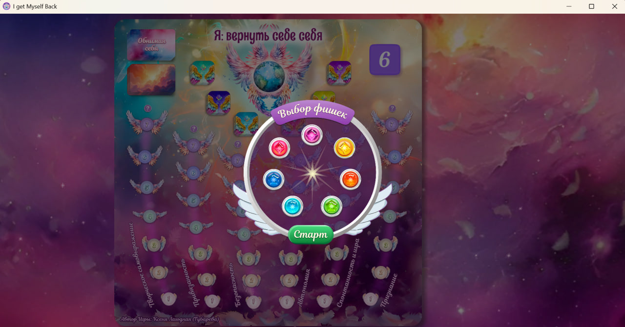 Игра поможет вернуться к себе, найти себя заново, вспомнить свои границы и обрадоваться от новой встречи с собой.