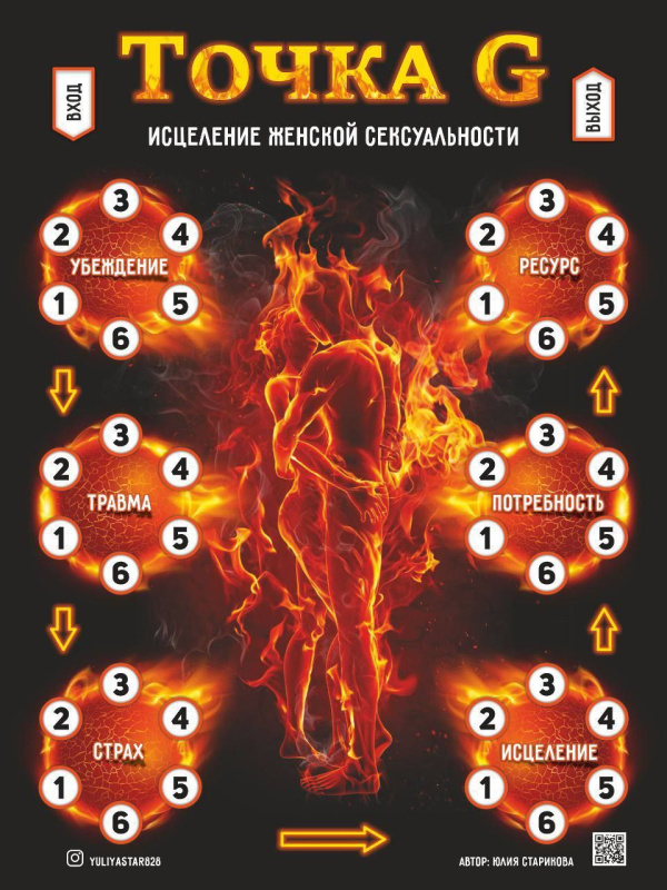 «Точка G. Исцеление женской сексуальности» - это авторская игра Юлии Стариковой, направленная на исцеление психологических травм, пробуждение женственности и сексуальности, а также улучшение всех сфер жизни.